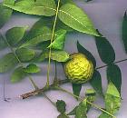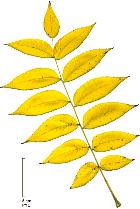 Big leavesopposite, composed of 11-22 leaflets (the final leaflet is often missing) # Common walnut: alternate, 5 - 11 leaflets. The leaf and roots are impregnated of juglon, as the European walnut.The leaves turn to a lovely golden color in autumn, but they often fall early in autumn. The leaves which litter the soil are of a nice effect. Uses: the wood of the Black Walnut of America is used in cabinetmaking.
