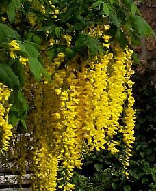 Flower papilionaceous, in long yellow clusters (20 - 50 cm according to species), of a nice effect, at early May. Some species have fawn flowers or crimson.