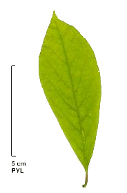 Deciduous foliage. Elliptical, spatulate leaves (a bit as the leaf of deciduous magnolia), of 5-13 cm long, 3-7 cm broad,