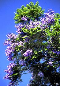 Etymology: guarani word. Origin: Brazil. Nice paths of Jacarandas in Southern Africa (Pretoria notably) are met. Habitat: hot regions (South of France from France). Leaves similar to the fern. Purple flowers in the form of glove finger.