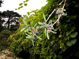 Fruits: small drupes (3-5 mm) protruding fleshy not edible, pruinose skin, turning to blue - blackish in autumn, persistent a part of the winter. Oval stone.