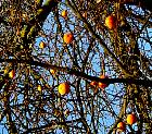 Origin: the persimmon of Europe (Diospyros lotus) is native to China. It was introduced into Italy in the XVIth century. Other species: the Japanese persimmon (khaki Diospyros) was introduced into France in 1860. The American persimmon comes from Virginia (Diospyros virginiana). Hardiness: zone 7 (it supports cold until -17 °C or 1 °F). Height: 10 m in Europe, 20 m in the hot countries. Lifespan: 500 years. Bark: very dark, dug in small rectangular blocks (very particular bark). Deciduous foliage: big leaves (15 cm) alternate, oblong, dark green shining below, pubescent in underside, which turn to purple in autumn. Small flowers, unisexual, in July, in the axil of leaves. Small fruits (2 cm) in the axil of leaves: these are berries of yellow-orange colour. They are astringent and sparsely edibles. Persimmon of Japan produces a 5 cm fruit, the persimmon (Japanese name), edible after frost (as the medlar), because frost softens him.