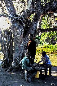 Banian, F. indica or F. bengalensis (photo taken in Malawi), also called "multiplying ", because it takes root since branches, or "strangler", because it can develop from a seed left by a bird on another tree, because it envelops its roots and eventually strangle. Its ability to live in the air, without taking into the ground, is called "epiphytic". The banian can have more than 350 big trunks and 3 000 offshoots. Record is held by a banian of Calcutta (India), which measures 412 m of circumference.
