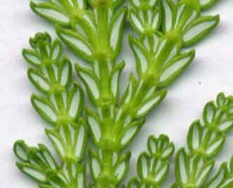 Conifer with persistent foliage. Etymology: dolabrata, in knife blade, because of flat scales. Origin: Japan. Habitat: wetlands. Sunny position. Hardiness: zone 6 (it supports cold until -23 °C or -9 °F). Height: 20 m tall. Shape: conical, sometimes in several trunks and branches spread in upright end. Bark: fibrous gray to reddish brown, peeling off in strips revealing orange underneath. Leaves in scales from 4 to 6 mm flattened. They resemble those of the arborvitaes, but distinguish themselves by stomatas waxen, white, of a nice effect, on underside. Flowers on the stems of the previous year, at the beginning of the spring; female green bluish, male cones green blackish of 0,2 cm. Fruits: cones in 6 or 8 woody scales, with an upright thorn, turning of the bluish green to the bluish reddish-brown; 5 cm. Use: Thuyopsis is planted in Europe as ornamental tree.