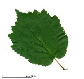 Deciduous foliage. The leaf of the Turkish Filbert resembles that of the Linden, but with a longer petiole (or leafstalk). It is widely oval or obovate, in the form of heart, sometimes lobbed, Pointed end and limb edged with double teeth. The ribs of the lower face are sometimes pubescent.