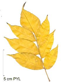 Deciduous leaves: imparipinnate (sometimes bipinnates), 20 to 40 cm long, leaflets (9 - 15) very serrated and characteristic.